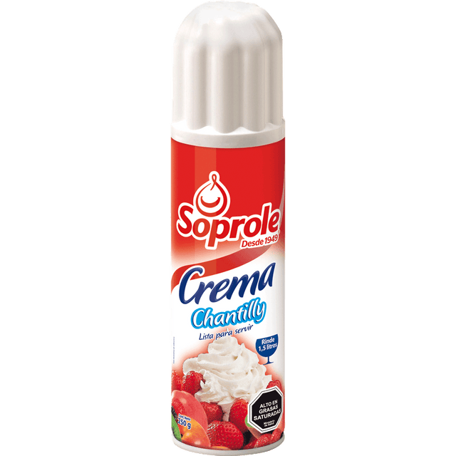 Deliciosa crema batida de 250 gramos, lista para usar. Ideal para postres, helados o para dar un toque especial a tus creaciones.